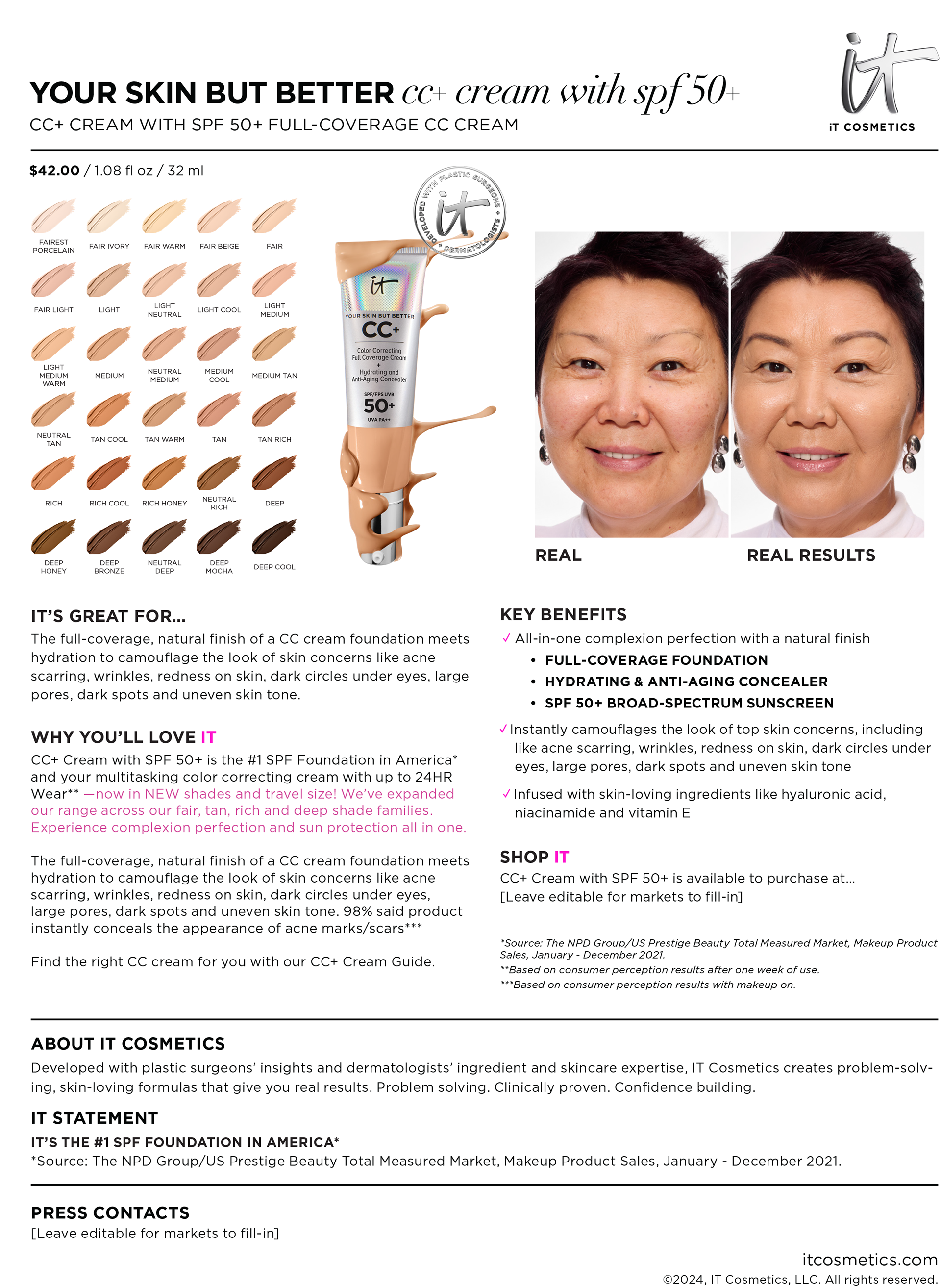 creates makeup and skincare developed with plastic surgeons and dermatologists that have clinically proven to be effective for all skin types.